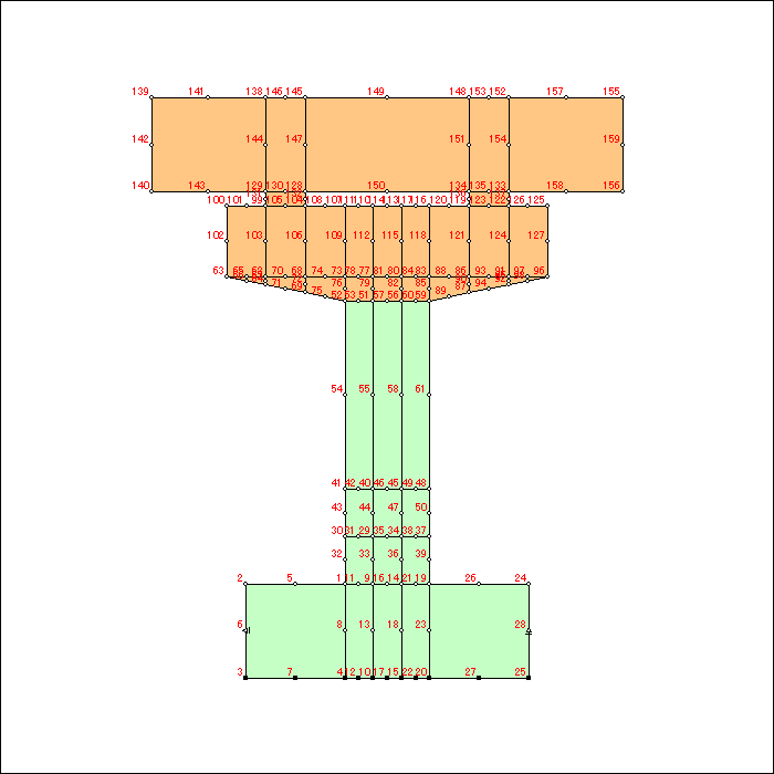 | Element Number | Material | Material X-direction | Material Y-direction | Reinforcing ratio X | Reinforcing ratio Y | Angle between X-axis of element and X-axis of steel bar (degree) |