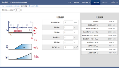 打合せや現場で便利な土木電卓機能の無料サービスです。平面 図形・立体図形の諸量、梁・ラーメン構造等の計算を簡易な入力で実行することが可能です。関数電卓機能 では 、作成した計算式をブックマークし、いつでも呼び出す機能を備えています。最新バージョンではデザインがリニューアルされ、スマートフォンやタッチパネルでの操作性を改善しています。