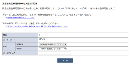 緊急地震速報は、「リアルタイム地震情報協議会」より受信した地震発生情報をリアルタイムで遠隔地へ送信し大きな揺れS波)の到達前に地震情報を通知する無料のサービスです。地震到達までに数秒間があれば、とっさの防災行動(例えば、火を消す、机の下に隠れる、等々)をとることが十分可能となり、被害を軽減する効果が期待できます。登録フォームを用意していますのでぜひご活用ください。