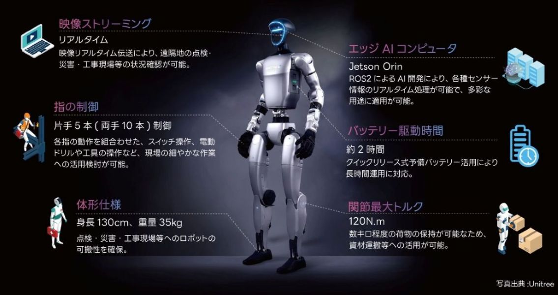 今回導入するUnitree G1は、人と同じ環境で作業できる優れた身体性を持っています 。このハードウェアをROS2上で制御することで、FORUM8の各種ソフトウェア(VR、解析、クラウド)とシームレスに接続することが可能になりました。