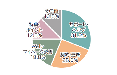 ご要望の傾向として、サポート・情報提供の充実と契約・更新手続きの効率化に関するものが多数を占めています。加えて、Webサイトやマイページの利便性向上に関するご意見も多数お寄せいただきました。