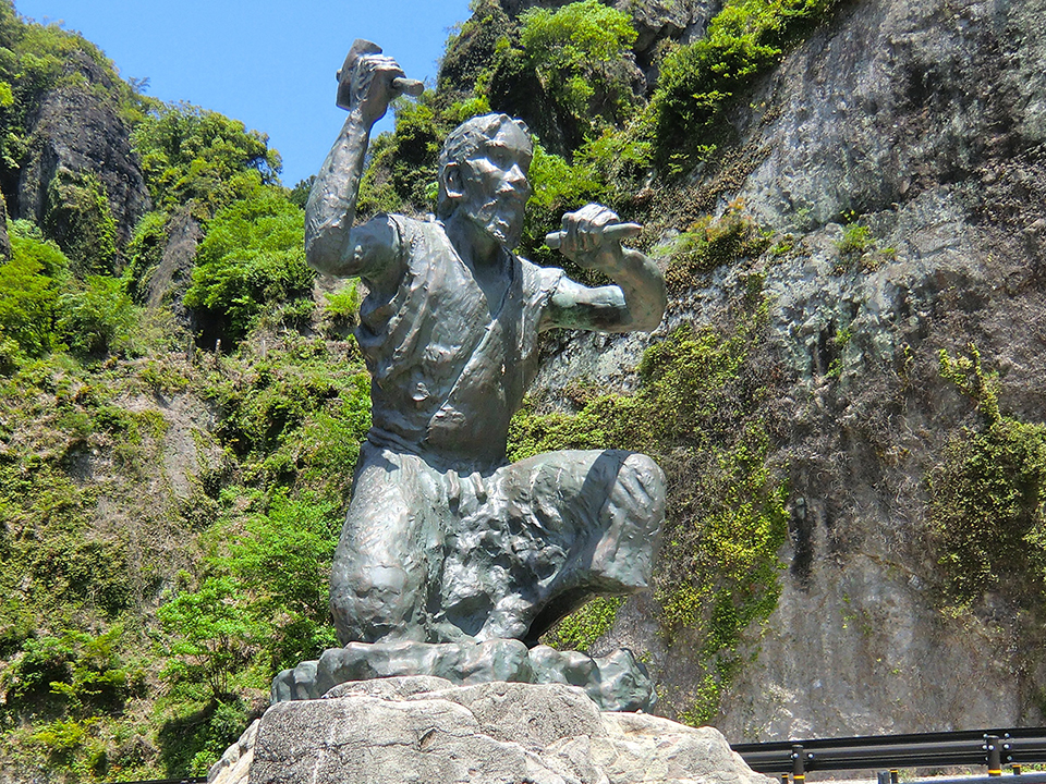 山国川沿いには、「青の洞門」と呼ばれる岩をくり抜いたトンネルがあります。その成り立ちは江戸時代に、一人の僧が人々を危険から救おうと決断したことにあります。 当時この地には「鎖渡し」と呼ばれる難所がありました。崖に鎖を打ち込んだだけの危うい道を、人々は身を寄せるようにして進むしかなかったのです。狭い足場と滑りやすい地面は、踏み外せばそのまま谷底へ転落しかねない危険なものであり、実際に命を落とす者も少なくなかったといいます。 この惨状を憂えた僧・禅海は、崖を掘り抜いて道を開くことを決意しました。托鉢で資金を集めて石工を雇い、自らもノミを手に加わります。およそ三十年にわたる作業の末、洞門は完成し、危険な難所は人々が安全に通れる道へと変わりました。 洞門の内部には今もノミの跡が残されており、当時の作業の厳しさを静かに伝えています。 *** この史実をもとに創作されたのが、菊池寛の短篇小説「恩讐の彼方に」です。史実を下敷きにしつつ、「贖罪」というテーマを重ね合わせたことで、より深い人間ドラマへと昇華されています。 物語の主人公・市九郎は、主人を手にかけた罪を背負い、逃亡の末に盗賊となった人物です。しかし、やがて罪悪感に耐えきれなくなり出家した彼は、贖罪の旅の果てに「鎖渡し」にたどり着きます。 多くの命が奪われる現実を前にした市九郎は、この崖を掘り抜き安全な道を作ることで人々の命を救うことこそ自らの罪を償う道である、と悟りを得ます。無謀と嘲られ、狂人と呼ばれながらも、市九郎はたった一人で掘削に取りかかり、何年もかけてトンネルを掘り進めていきました。その不屈の姿を見た人々は心を動かされ、彼の孤独な作業は少しずつ共感と支援に包まれていきます……。 また物語の後半には、かつて市九郎に父を斬られた青年・実之助が登場します。父の仇を討とうとする彼と、贖罪に身を捧げる市九郎――二人の思いが交錯し、物語は一層の緊張感を帯びていきます。 「恩讐の彼方に」は、インターネット上の電子図書館「青空文庫」でも公開されています。ぜひ一度手に取ってみてください。