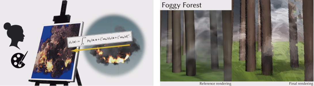 本研究では、煙・炎・霧にアーティストの筆致を転写して動的絵画調アニメーションを生成する「ストローク転写」技法を開発。SIGGRAPH 2025技術論文に採択され、手描き風表現と作業負担軽減を両立した。