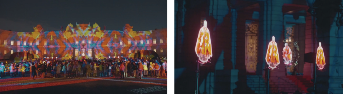 「伝統文化×最先端テクノロジー 「CHRONOSENSE」 株式会社Droots 迎賓館赤坂離宮(開館50周年)で、伝統文化や歴史的遺産の魅力と最先端テクノロジーを融合した初の夜間冬季ライトアップイベントを開催。能や歌舞伎とテクノロジーが融合し、「時間の流れ」を体感できる瞬間を表現。