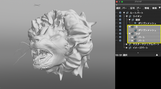 5.「再分割」で細かくし、タテガミ部分にディティールをつける |