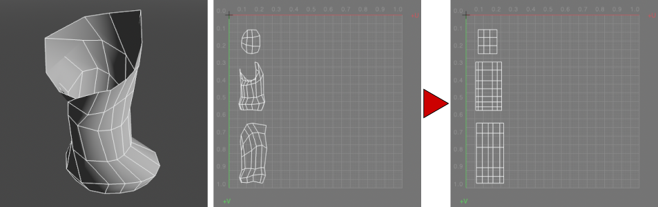 「UVのグリッド整列」を使用することで、四角形のメッシュで構成されたUVをグリッド状に整列させることができます。