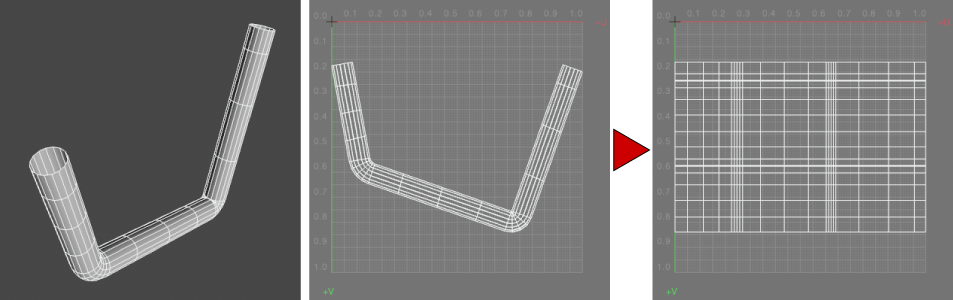 上面、底面のない円柱やパイプなどのUVを境界稜線のうち、最もUV原点に近いものを基準に整列します。