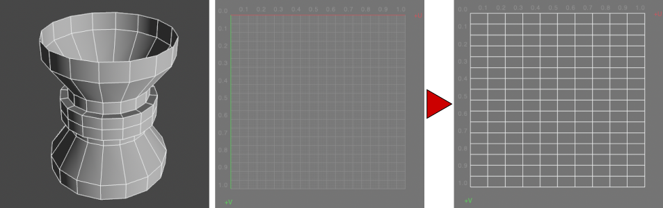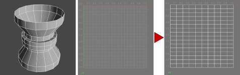 UVを持たないメッシュに、グリッド状のUVを展開します。