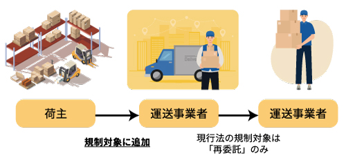 ① 協議を適切に行わない代金額の決定の禁止 中小受託事業者が価格協議を求めた際に、委託事業者が協議に応じない・必要な説明を行わないなど、一方的に代金を決定して中小受託事業者の利益を不当に害することが禁止されました(改正法5条2項4号)。 これは、様々なコストの上昇を踏まえ、価格転嫁の機会が奪われていた実態を是正するための規制です。従来の下請法は、委託事業者による買いたたきや下請代金の減額など、対価を不当に引き下げる方向の行為を規制していましたので、委託事業者の下請事業者に対する対価の上昇という、従来とは異なる視点からの改正といえます。 なお、中小受託事業者から値上げの要請があった場合に、これを当然に受け入れなければならないということではなく、値上げ要請の協議には誠実に対応し、(求められている値上げが難しい場合など)中小受託事業者に必要な説明をし、双方協議の上で代金を決めていくことが求められています。 ② 荷主から運送事業者への運送委託を規制対象取引に追加
