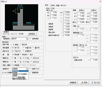 橋台設計時の基礎形式について、直接基礎/杭基礎/杭基礎(2.5次元解析)/深礎基礎に加えてケーソン基礎と鋼管矢板基礎を追加します。基礎形式は、「初期入力」画面において選択することができます。