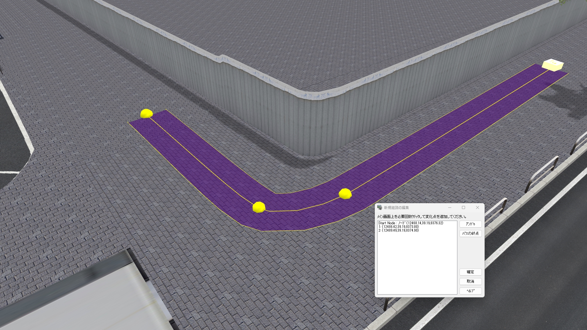 近年は、様々な方法で収集した人の移動の情報をビッグデータとして活用し、人流シミュレーションを行う事例が増えています。今回は、UC-win/Roadで人流シミュレーションを行う方法について解説します。 OD情報のみ存在する場合の人流シミュレーション 人の移動のOD情報(出発地点と目的地の情報)のみが存在する場合、歩行者ネットワークの機能を利用して出発地、目的地、移動人数を入力することで人流シミュレーションを行うことができます。人流の詳細な位置情報が存在する場合の方法は後述します。 歩行者ネットワークの作成 歩行者ネットワークは、幅を持たせた歩行ルート(パスウェイ)を空間上に引き、多数の歩行者を生成する機能です。歩道や広場などに面的にパスを引くことで人流をシミュレーションでき、ランダムな方向もしくはOD設定により目的地へ向かわせる動きを表現できます。作成するにはメニューバーの「編集」⇒「ネットワーク」⇒歩行者の項目で「新規追加」⇒ネットワークの項目で「新規追加」⇒パスウェイの項目で「新規追加」-「パスウェイ」の順に選択し、空間上にパスを引きます。 パスの端部にあたるノードには異なる複数のパスを接続し、広範囲の複雑な歩行者ネットワークを構築できます。パスの途中部分に接続したい場合は、途中の頂点をノードに変換することで接続が可能となります。パスを引いた後は、歩道や広場に合わせてパスの幅を調整します。混雑時は衝突を回避するために歩行者がパスからはみ出す場合もあるため、パスの幅は通行可能な幅よりも若干狭く設定してください。途中で道幅が変わる場合や障害物がある場合はパスを細かく分割し、場所ごとに幅を変えると良いです。 パスは進行方向を設定でき、片方向のみとすることも可能です。例えば左側通行の流れとしたい場合は、2本のパスを並べてそれぞれ逆方向の指定とすることで再現できます。また、フィルターを設定すると、事前に設定した属性の人だけが特定のパスを通らないようになります。 目的地の設定(OD設定) 新規作成した歩行者ネットワークは初期状態では歩行者がランダムに移動しますが、OD設定を行うことで特定の目的地に向かって移動する人流を生成することができます。出発/目的地はそれぞれネットワーク上のノード(「歩行者の発生・消滅」にチェックが入っているもの)を指定するので、ノードに個別の名称を入力しておくと便利です。OD設定への切り替えは「歩行者の生成」の画面でタイプをNormalからODマトリックスに変更します。 ODマトリックスでは指定可能な2点のノードを指定し、2点間を移動する人数の初期値、最大値、単位時間ごとの発生人数等を指定できます。目的地へのルートは最短経路が基本となりますが、混雑状況やエスカレータ等の利用の嗜好性によって変化する場合もあります。 歩行者属性設定 パス上を歩く歩行者は、キャラクタの種類ごとにカテゴリの区分を行うことで、移動速度などの特性やルート選択の嗜好性などを表現できます。カテゴリごとに、階段・エスカレータ・エレベータの選択嗜好性、一人あたりの専有面積、平面/階段/エスカレータの歩行時速度、エスカレータの歩行割合などの設定が可能で、カテゴリ自体も追加可能です。 この設定を応用すると、例えば雨天時の想定でシミュレーションする場合に、専有面積を広めに設定して移動速度を遅くすることで、歩行者が傘をさしている場合の人流を表現できます。その際、歩行者プロファイルで傘をさしているキャラクタを選び、描画オプションで雨を降らせると、よりリアルな見た目となります。 階段/エスカレータ/エレベータ設定 人流を再現するルート上に階段やエスカレータがある場合、まず階段やエスカレータに沿ってパスを引きます。その後、タイプの設定を階段もしくはエスカレータに切り替えることで、歩行者の挙動がそれぞれに適したものとなります。階段の場合は移動速度を落とすことができ、エスカレータの場合は立ち止まったまま指定の速度で移動するほか、立って乗る人と歩く人の割合を指定して表現できます。 エレベータの場合は、3Dモデルと連動させて表現します。ドアの開閉を表現した3Dモデルを配置し、ノードのスケジュール設定でモデルの割り当てと開閉コマンドの指定を行うと、エレベータで接続された2つのノード間の移動が表現されます。ドア周辺にはノードの待ち行列機能で行列の並び位置を引くことでエレベータ待ちの行列が再現されます。 移動経路の座標情報が存在する場合の人流シミュレーション 各個人の移動経路が座標情報として記録されている人流データがある場合は、CSVに書き出すことでマイクロシミュレーションの機能で人の動きを再現可能です。その場合、歩行者ネットワークの構築は必要ありません。 ■人流の読み込みに必要な要素設定 人流データの中に以下の要素が揃っている必要があります。その際、時間情報や位置情報は個人I