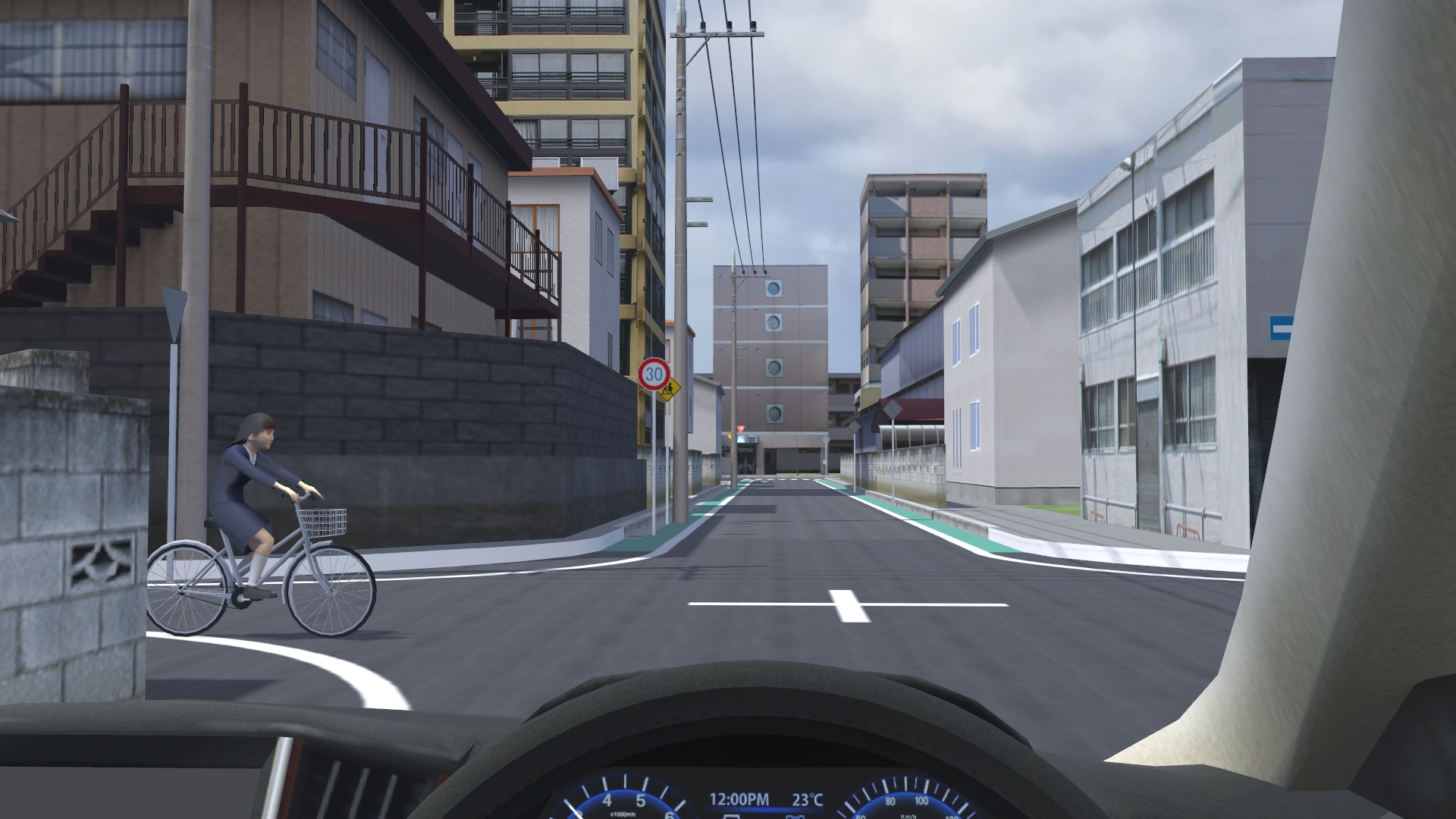 2026年4月1日から自転車の交通違反に対して交通反則通告制度(青切符)が導入されるなど、近年は自転車利用者に対して交通事故防止の徹底がより強く求められるようになってきています。今回は、シナリオを利用して自転車や電動キックボードの動きをコントロールする方法について紹介します。意図的な制御を行わない単純な走行の表現については Up&Coming150号 のサポートトピックスで紹介しているので、そちらをご覧ください。 シナリオ設定による自転車のコントロール 自転車の走行を表現する最も単純な方法は、MD3キャラクタの設定で飛行ルートを指定する方法ですが、その場合は一定の速度で走行させるか、動作制御点を使用して特定の地点で速度を変える表現のみ可能です。停止させた場合、再度走行開始させることはできません。 シナリオを使用する場合は、上記の方法では行えない以下の表現が可能となります。 任意のタイミングでの速度の変更 シナリオを使用する場合、イベントのモデル制御設定を使用して任意のタイミングでの速度の変更が可能です。タイミングはイベント遷移条件により指定可能で、時間、衝突判定、距離、キーボード操作等の様々な条件を選択できます。また、速度の変更と同時に動作(アクション)の切り替えも可能で、デフォルト設定では一瞬で切り替わりますが時間を指定して徐々に切り替えていくことも可能です。なお、イベントで制御可能なキャラクタは同一シナリオ内で設定したものに限ります。 一時停止と発進の動作の指定 シナリオを使用せずに自転車のキャラクタの速度をコントロールする場合は動作制御点を使用しますが、特定の地点における速度を指定する形となるため、一度停止させてしまうと発進させることはできません。 シナリオを使用する場合はイベント遷移条件を指定して速度をコントロールするため、イベントのモデル制御で 0km/hを指定して停止させた後に、任意のタイミングで再び速度を指定することで発進させることが可能となります。これにより、交差点での一時停止の表現や、自動車が近づいたタイミングで自転車を発進させるヒヤリハットの再現をシナリオ設定で行うことができます。 信号に従って停止・発進する様子を表現する 標準機能ではMD3キャラクタを信号に従って動作させることはできませんが、シナリオで信号現示の切り替えタイミングとMD3キャラクタの停止・発進タイミングを同時にコントロールすることで、自転車が信号に従って動くイメージを疑似的に表現することが可能となります。それぞれ以下の方法でイベント設定を行います。 (1)シナリオイベントによる信号現示のコントロール (2)自転車の停止と発進のコントロール この方法で自転車をコントロールすることで、単純に信号に合わせて直進する自転車だけでなく、交差点で二段階右折を行う自転車の再現にも応用することができます。 シナリオ設定による電動キックボードの表現 自転車の走行はMD3キャラクタを使用しますが、電動キックボードの走行を表現する場合は自動車と同様に3Dモデルを使用します。RoadDBからダウンロードする場合、3Dモデルの「道路車両」内の「自転車・バイク」のカテゴリに登録されています。 飛行ルート上を走行させる場合 歩道もしくは道路上の任意の場所を走らせたい場合、飛行ルートを引いて電動キックボードの走行設定を行うこととなります。設定の考え方はMD3キャラクタによる自転車の表現と同様で、電動キックボードの場合は「飛行モデル」を指定することでモデルリストから選択でき、速度の設定は自転車の場合と同様となります。 交通流として走行させる場合 例えば路肩を走る電動キックボードが信号に従って赤信号で停止、青信号で発進する様子を表現する場合、交通流として表現することで自動車から車両として認識され、衝突せずに走行させることができます。その場合、道路断面を工夫して路肩部分を車線として設定し、交差点や交通流設定で自動車が路肩の車線を走行しないよう設定する必要があります。 道路断面を編集して路肩を車線として設定した後、電動キックボードを走らせるための交通流設定を行います。まずは交通流プロファイルの設定で、電動キックボードのみが含まれるプロファイルを新規作成します。 次に、電動キックボードを走らせる道路の交通流設定で、路肩として設定した「車線1」のプロファイルを電動キックボードのものに設定し、同じ行の初期速度の欄をクリックして電動キックボードの走行速度を指定します。その他の車線は空欄のままとします(空欄の場合は上の欄外の初期速度で指定されている値が適用されます)。その後、交差点の走行ルートや停止位置の調整を行うことで、路肩を走る電動キックボードを表現することができます。 シナリオによる自転車・電動キックボード表現の活用イメージ こうしたVRシミュレーションに触れることにより、普段キックボードや自転車
