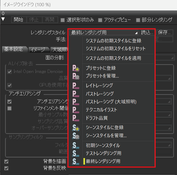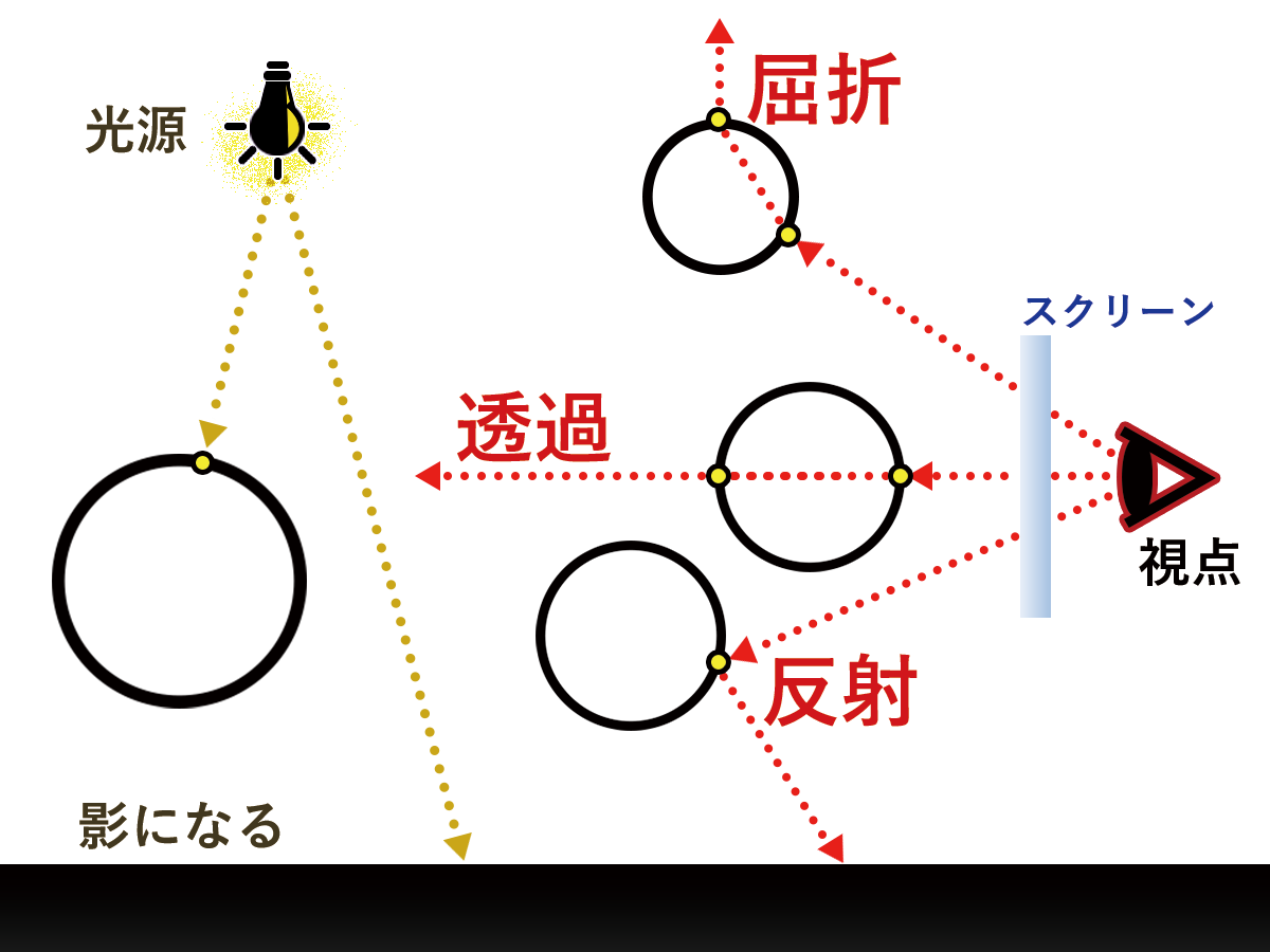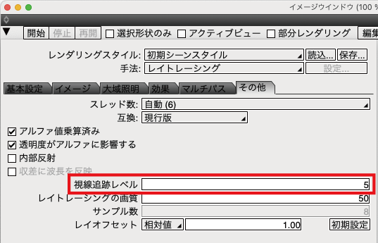 Shade3Dに限らず3DCG全般で、難しい表現の一つとしてガラスや水などの透過・反射の表現です。 Shade3Dでは、従来のShade3Dマテリアル以外にPBRマテリアル(物理ベースレンダリング(Professional版以上))へ対応するなど、透過・反射等を含め表現の幅が広がり、よりフォトリアルな材質表現が可能になりました。その反面、レンダリングの際は、透過・反射を空間内でシミュレーションする際の設定やレンダリング手法の違いにより意図しない結果が発生するケースがあります。今回は、透過・反射表現を行う際に知っておくと便利な「視線追跡レベル」をご紹介します。 視線追跡レベルとは 視線追跡レベルは、レンダリング設定 > 「その他」タブにありレンダリングにおいて、レイ(視線)を空間内の形状とぶつかる回数を指定することができます。 パストレーシングやレイトレーシングでは、視点からスクリーンにレイ(視線)を飛ばし、透過や屈折する物体にぶつかった場合は物体内部で曲げて進める計算を行います。 最終的に、背景や透過・反射がない物体にぶつかると視点位置から表面材質や色の情報を取得し、光源が存在する場合は光の計算や物体にさえぎられる影を計算します。 視線追跡レベルは設定した値に応じてレイ(視線)を飛ばし、数が多いほど形状表面の透過や反射、屈折、光の影などを現実的にシミュレートします。 例えば、図3では視線追跡レベルを「1」、図4に「10」を指定しています。球に対して表面材質の「反射」を設定したもので、値が多いほど反射回数が多く表現されていることが確認できます。 図5では視線追跡レベルが「5」、図6に「10」を指定しています。 形状はコップと水に分かれており、視線追跡レベル「5」ではレイ(視線)を飛ばす回数が不足し、木目が表示されておらず透過表現が正しく行われていません。対して「10」を設定したものは、透過が正しく表現されコップを通して木目が正しく表示されています。 これは、コップと水の面に対して計算するレイ(視線)の数が足りないために発生する現象です。透過・反射する場合で自然法則に基づいた表現を行いたい場合は、視線追跡レベルを調整することで高品質なレンダリング結果を得ることができますが、値が大きいほどレンダリングに時間を要しますので、ご注意ください。 レンダリング設定を共有する Shade3D Ver.26ではレンダリング設定をプリセットとして登録できるようになりました。プリセットでは従来のレンダリングスタイルの登録と異なり、Shade3Dの共通設定としてシーンをまたいでレンダリング設定を利用できます。シーンスタイルでは、設定をシーンファイルに保存することができます。制作物やスタイル(透過表現や陰影表現など)に合わせて登録することができるので、ぜひご活用ください。 最後に Shade3Dに関する様々なテクニックや情報を「Shade3Dナレッジベース」にて公開しています。操作や表現に迷ったら、是非ご活用ください。 |