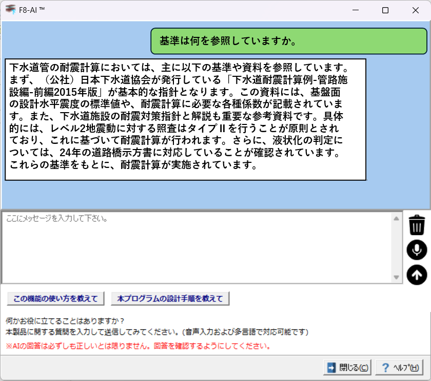「下水道管の耐震計算 Ver.4」では、改定された基準対応とAIを使用したサポート機能の拡張を行っています。