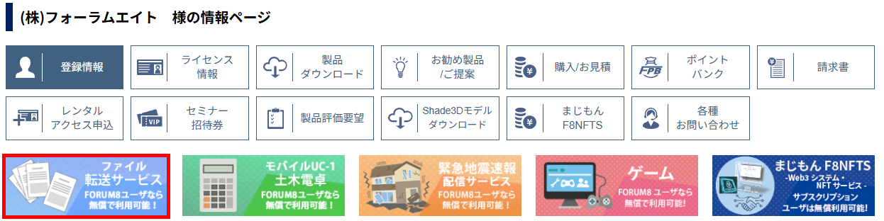 フォーラムエイトでは大容量ファイルや機密情報を“安全・簡単・確実”に届けるためのクラウド型ファイル転送サービスをユーザー様向けに無償で提供しており、ユーザー情報ページのバナーよりアクセスできます。メールに添付できないサイズのデータでも、最大10GBまでセキュアにまとめて送信できるため、図面データや動画、解析結果など大容量ファイルの受け渡しに最適なサービスとなっております。